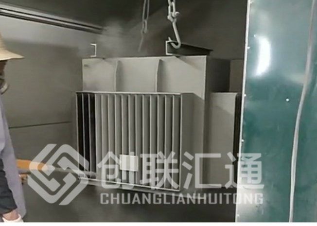 接下來(lái)會(huì)對(duì)變壓器進(jìn)行一個(gè)特殊的化學(xué)處理,增加變壓器外殼的密封性和牢固性,然后進(jìn)行噴粉。這個(gè)工種的師傅有點(diǎn)辛苦,夏季燥熱的車間,不得不全副武裝保護(hù)好頭部和面部。因?yàn)榉蹓m的確有點(diǎn)大。