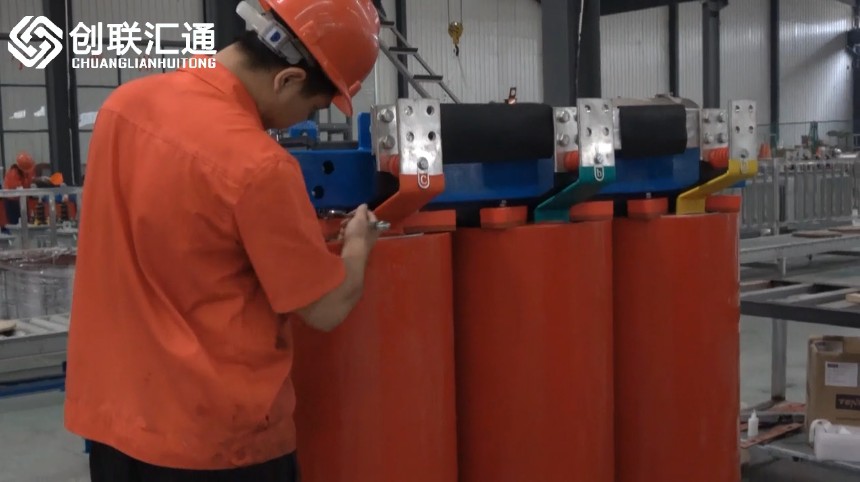 創(chuàng)聯(lián)匯通專業(yè)變壓器生產(chǎn)廠商為您實拍變壓器生產(chǎn)流程,實力廠家,精準工藝,看到見,摸得著。1000KVA干式變壓器完工前螺栓緊固。
