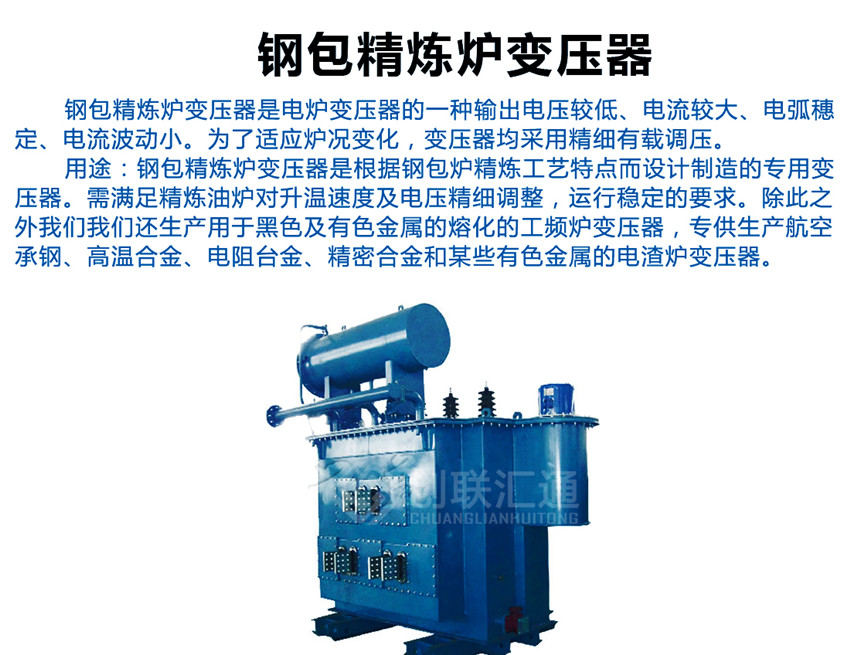 鋼包精煉爐變壓器是電爐變壓器的一種輸出電壓較低、電流較大、電弧穗定、電流波動小。為了適應(yīng)爐況變化,變壓器均采用精細有載調(diào)壓。